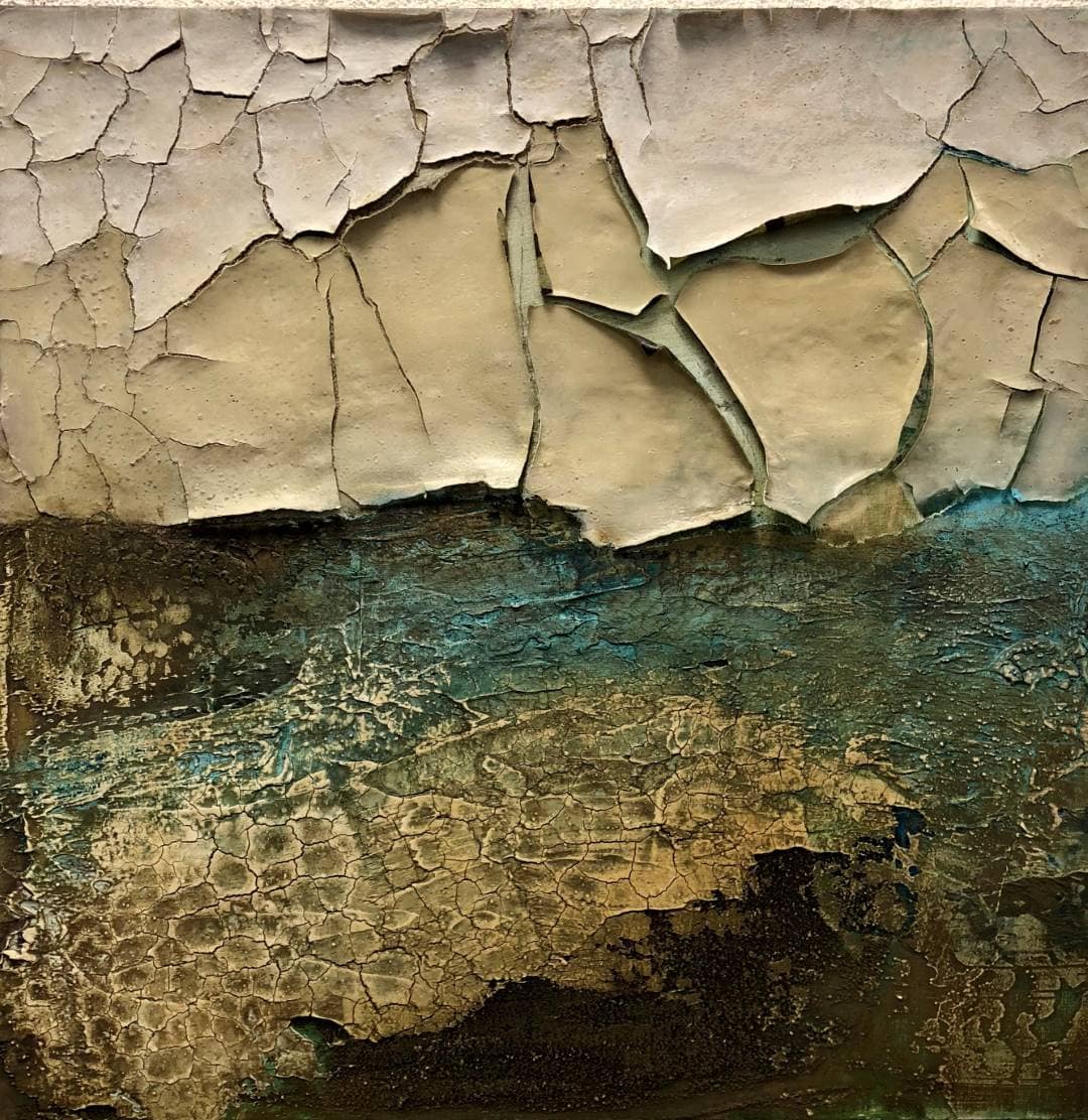 Im zweitem Stepp arbeiten wir mit Hautleim. Dieser bietet ungeahnte Möglichkeiten. Hautleim wird mit Wasser verquollen. Das Material bereite ich vor. Am Kurstag wird es nur noch erwärmt, danach hat das Material die Fähigkeit der Hautbildung, es ist ein natürlicher Binder und lädt uns zum Experimentieren ein. Risse, Schollen klein und groß, Austrocknungen, Ablösungen, Zartes und Fragiles das alles können wir mit Hautleim erreichen. Mit meiner Unterstützung, Ihrem eigenen Instinkt und viel Mut zum Experimentieren entwickeln wir eine persönliche informelle Bildsprache.